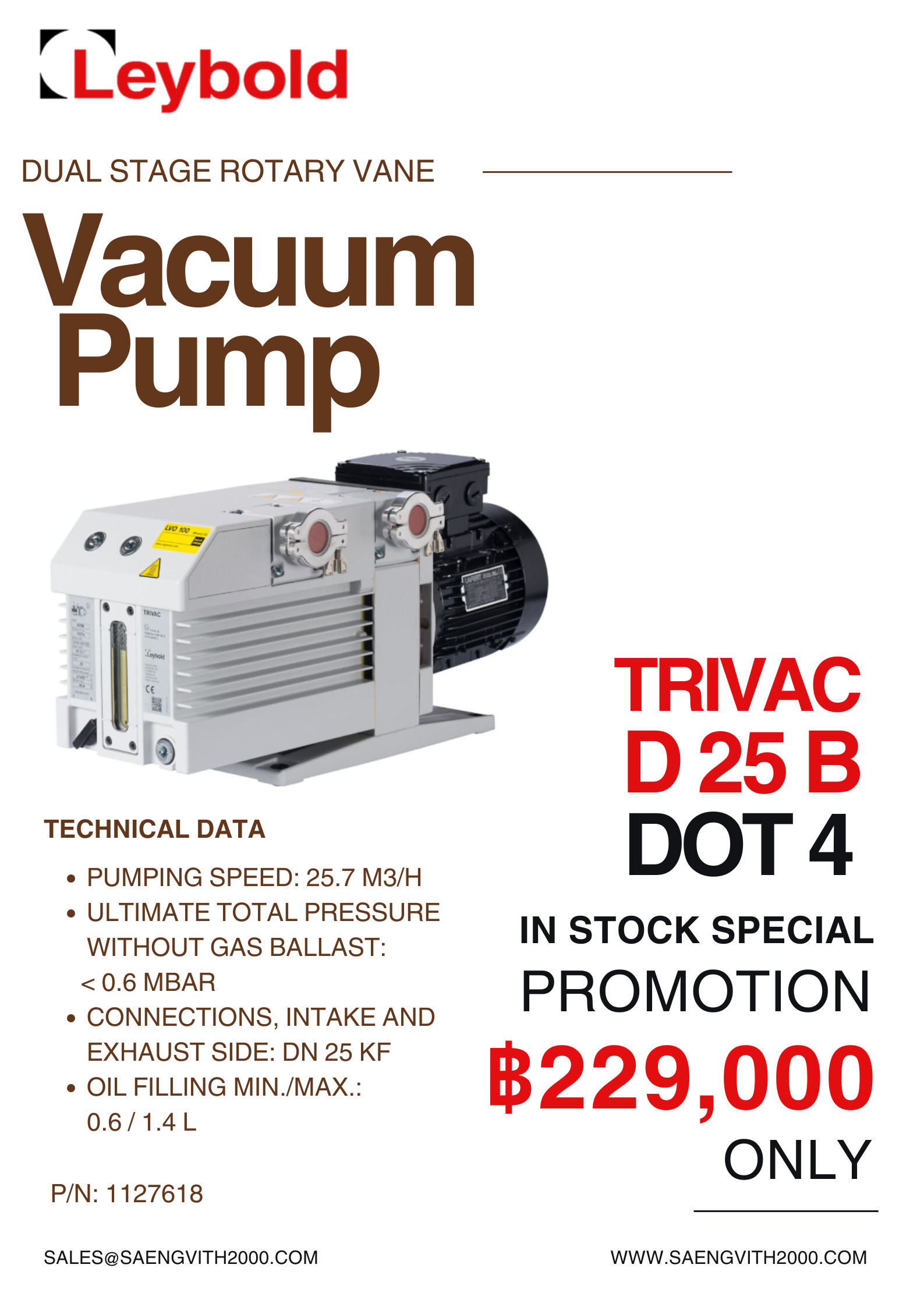 Leybold TRIVAC D25 B DOT4 - เหมาะสำหรับอุตสาหกรรมยานยนต์ ระบบเติมและถ่ายอากาศน้ำมันเบรก